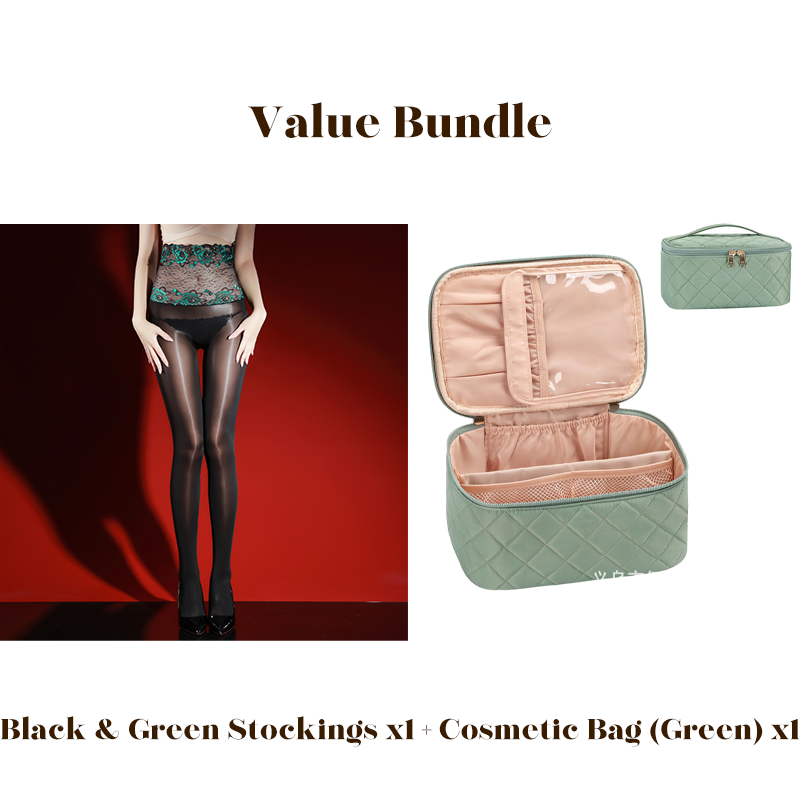 📢📢50% OFF!!⏰Value Bundle: 8D Oil-Sheen Rose Lace Stockings + Cosmetic Bag