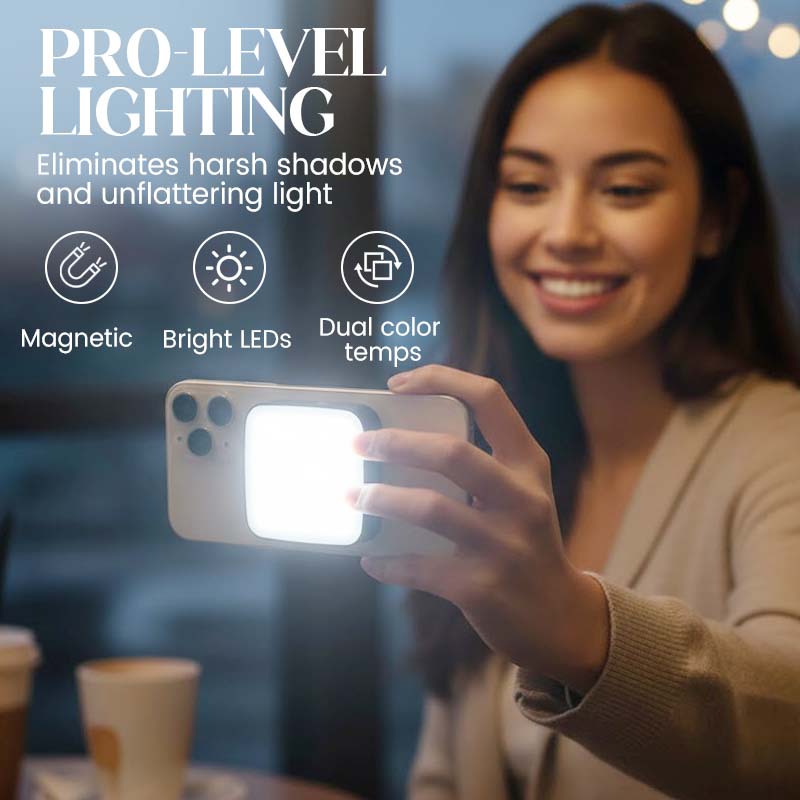MAGNETIC PHONE ATTACHMENT: Effortlessly snap the light onto your compatible smartphone for a secure, instant connection. No clamps or clips needed, ensuring quick setup for flawless photos and videos on the go.
